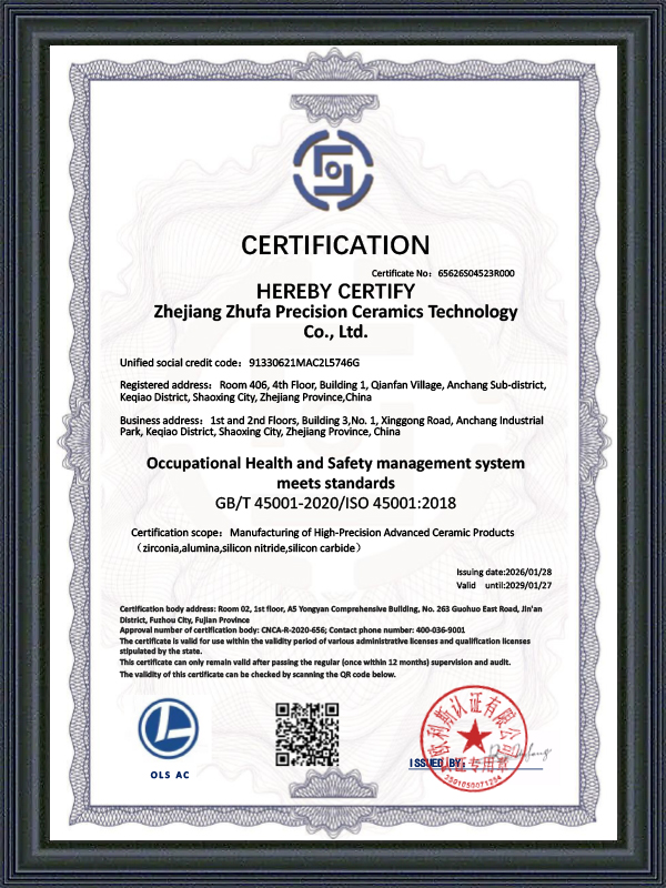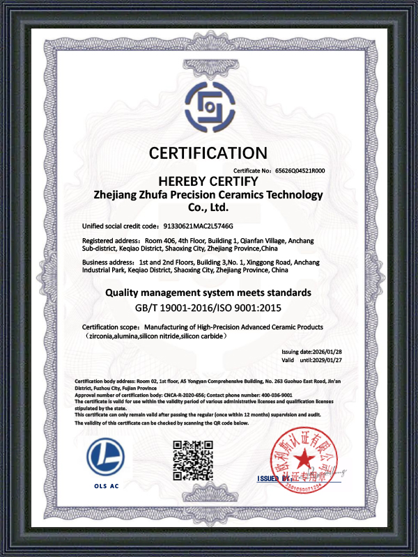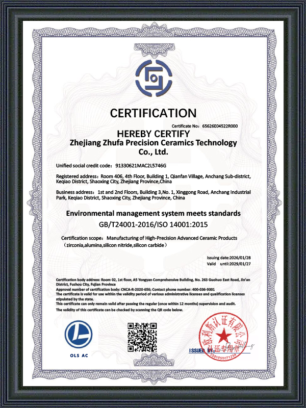 Vi fokuserer ikke bare på materialer og design, men legger også vekt på hver detalj i prosessen. Fra utstyr konfigurasjon til kvalitetsinspeksjon, Zhufa følger alltid teknologidrevne og strenge kontrollstandarder for å sikre ytelsen og påliteligheten til hvert keramisk produkt.
